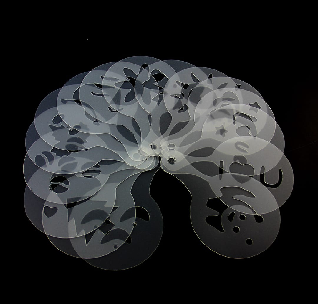 Coffee Stencils 16pcs/Set Drawing Die Tools Fancy Coffee Printing Model Plastic Spray Template Mold For Kitchen Coffeeware