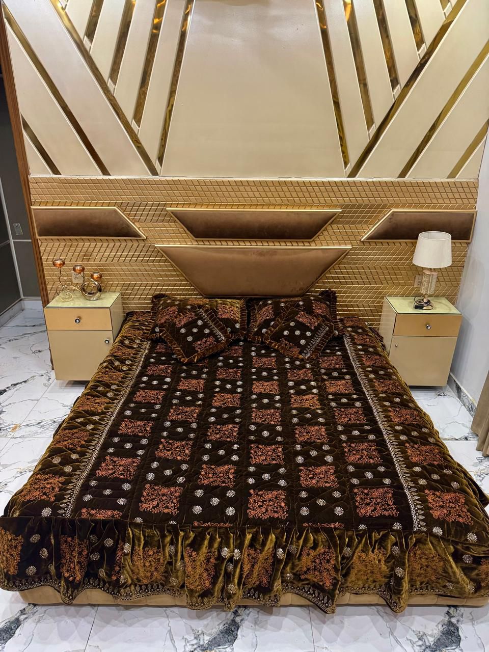 Design 110 - Fancy Bridal Velvet Bed Sheet Set Beautifull Design - Full Bed Sheet Set - Cushions Set - Pillow Set