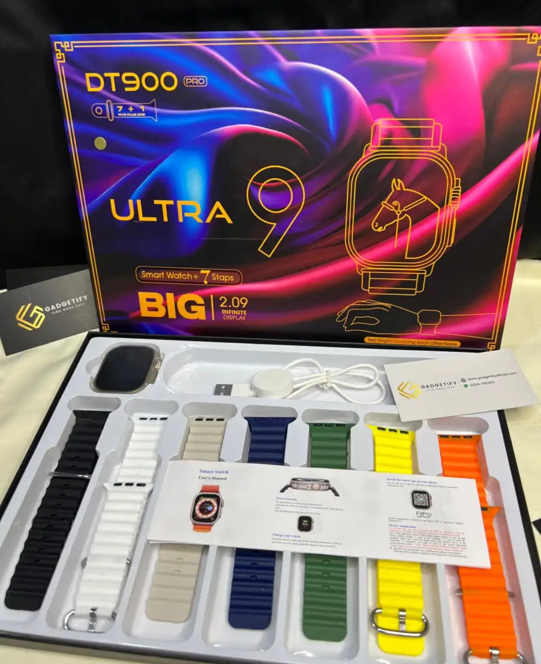 DT900 Pro Ultra Smart Watch (49mm) with 7 straps + Wireless Charger 2.09 Infinite Display