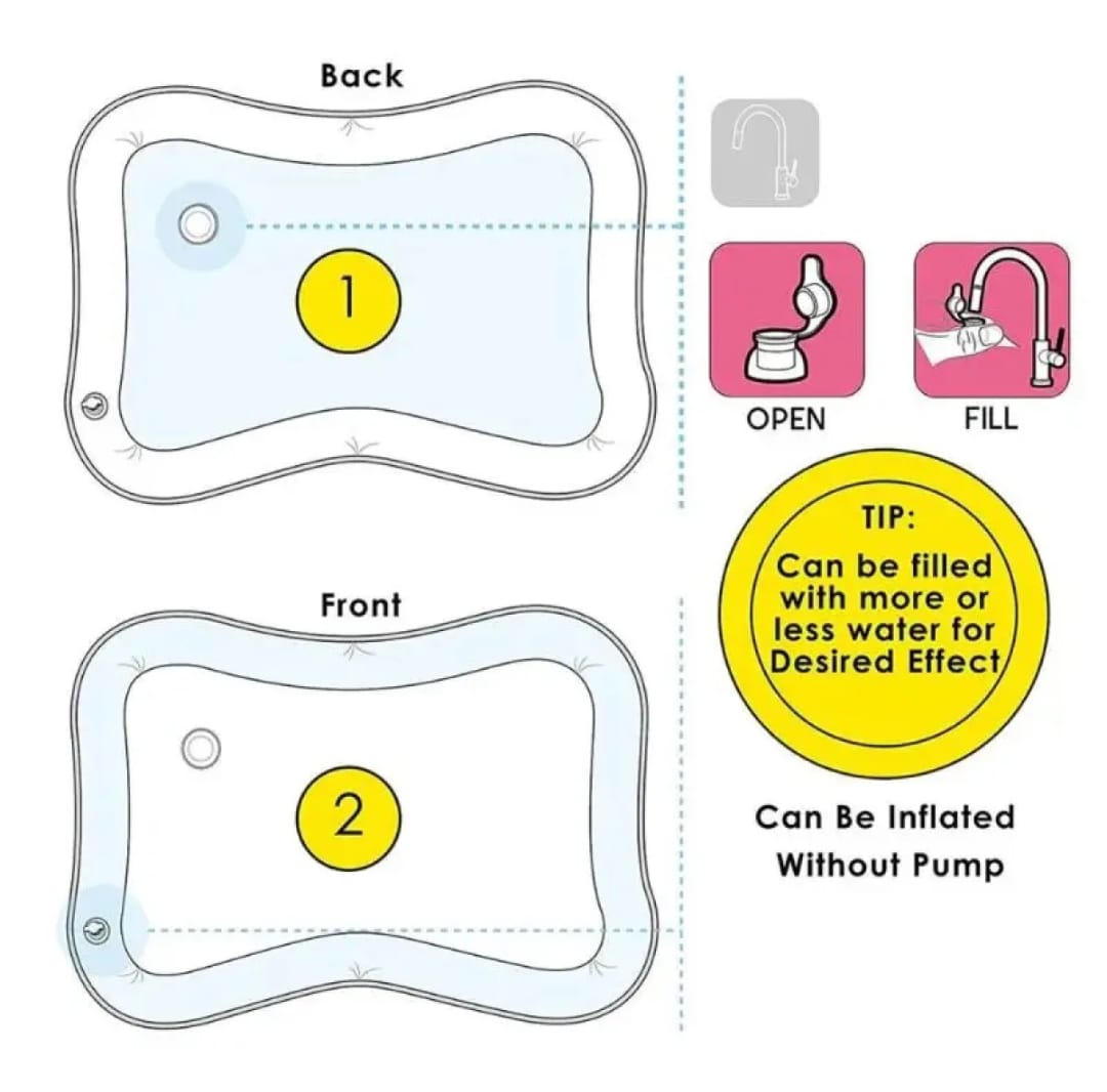 Inflatable Tummy Time Premium Water Mat Infants And Toddlers Fun time Play Activity Pad For 3 to 24 Months, Strengthen Your Baby's Muscles, Portable