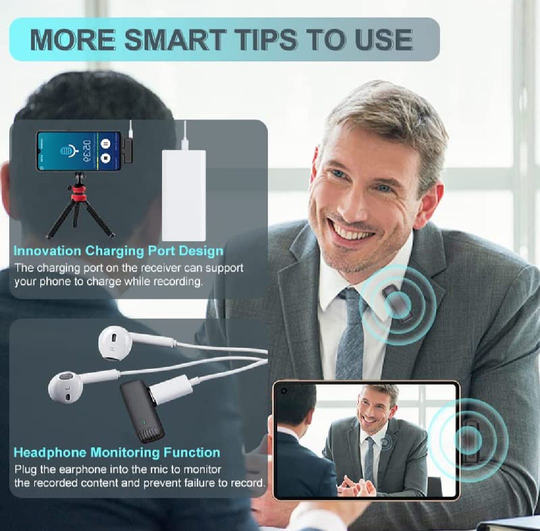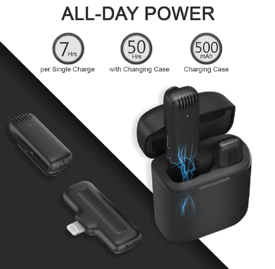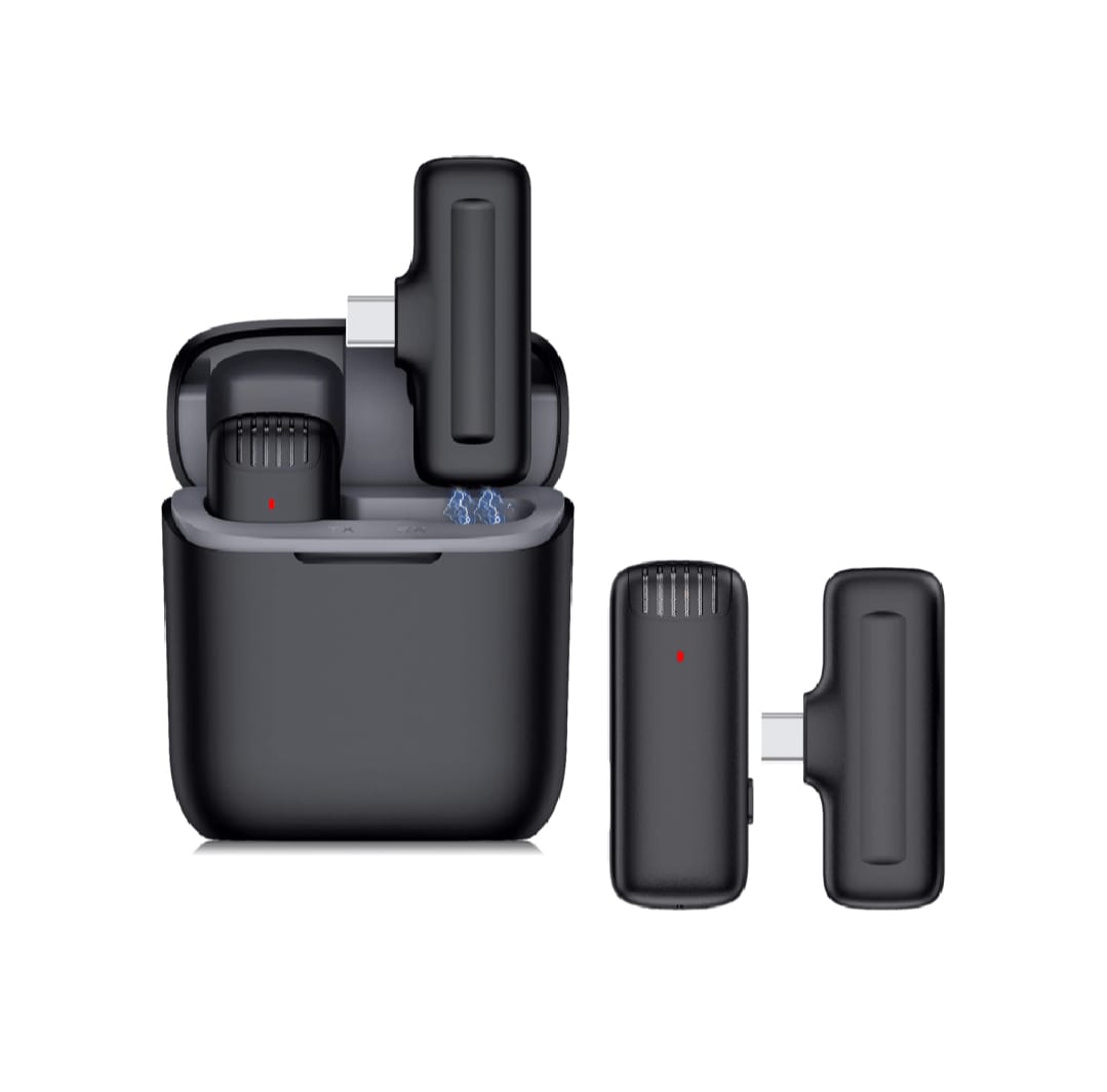 J11 Wireless Lavalier Microphone with Noise Reduction for iPhone & Android, Type C, Charging Case (Single Mic)
