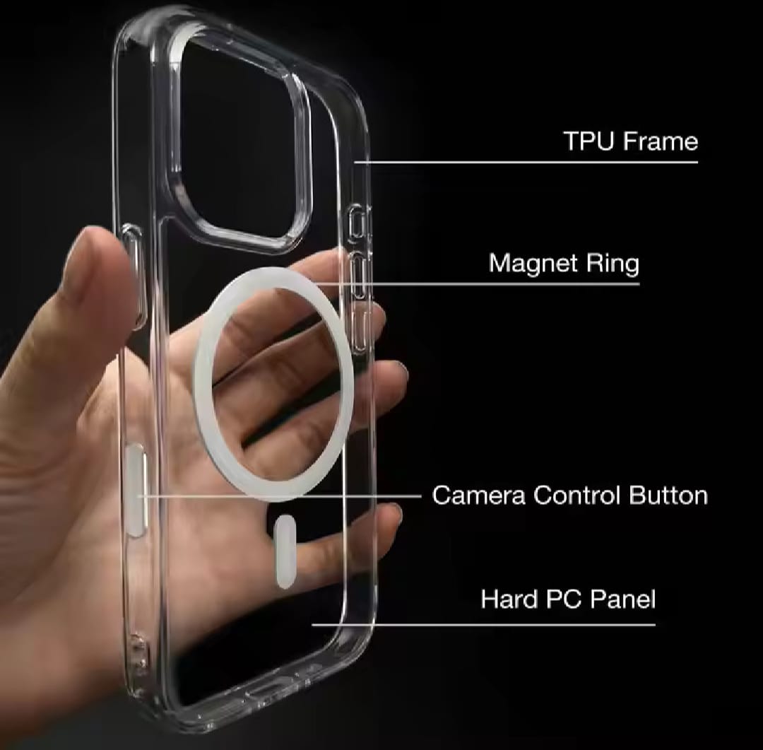 Magsafe Cover For Iphone 11, 12, 13, 14 15 & 16 series Transparent Bumper Jelly Cover